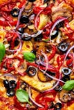 Red Base with Sausage, Mushroom, Onion & Green Peppers.